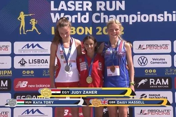 البطلة المصرية جودي زاهر 🇪🇬 تتوج بالميدالية الذهبية 🥇 ببطولة العالم ليزرن للخماسي الحديث بالبرتغال تحت 15 عامًا💪 تهانينا لبطلتنا الواعدة🙏