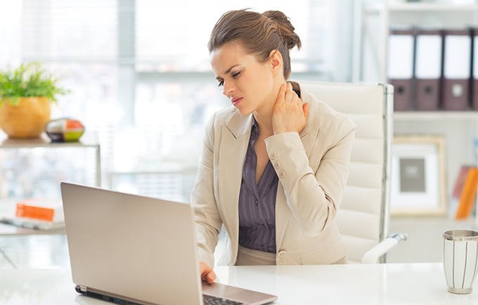 أخذ فترات راحة، سواء كان الشخص يعمل على الجهاز الخاص به، أو يقود مسافات طويلة، وذلك بالقيام بالوقوف والتحرك بشكل متكرر، مع شد الكتفين، والرقبة.