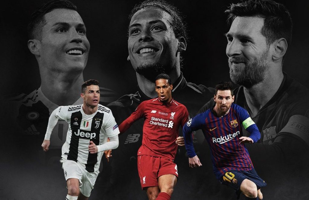الإتحاد الأوروبي لكرة القدم (ويفا) يعلن عن ترشيح كل من الارجنتيني ليونيل ميسي نجم برشلونة الاسباني والبرتغالي كريستيانو رونالدو مهاجم يوفنتوس الايطالي والهولندي فيرجيل فان دايك مدافع ليفربول الانكليزي لجائزة أفضل لاعب في أوروبا لموسم 2018-2019.
