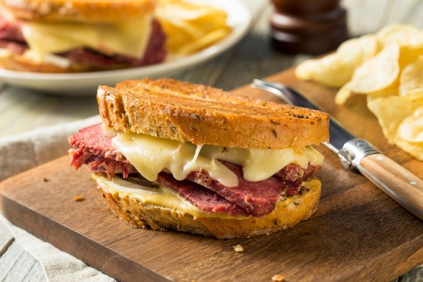 وزعي الروست بيف، والطماطم، والخس، والخيار، فوقها وقدميها فوراً.