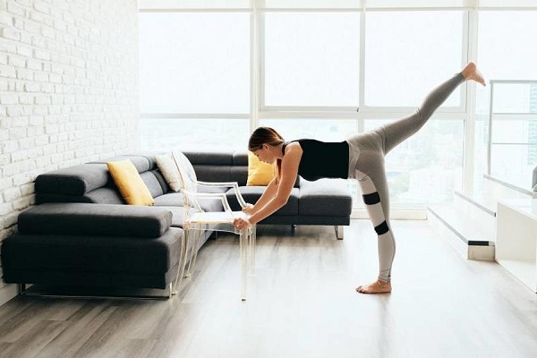 قفي خلف منضدة من دون أن تمسكي بها، ثم ارفعي قدماً واحدة عن الأرض ببطء. الهدف هو الحفاظ على توازنك لمدة 20 ثانية دون الإمساك بالمنضدة. قومي بهذه الحركة مرتين، ثم بدّلي الساق.