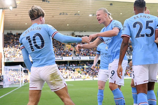 أضاف النرويجي إيرلينغ هالاند تسديدة من خارج المنطقة إلى رصيده من الأهداف الرائعة منذ انضمامه إلى مانشستر سيتي في فوز فريقه يوم السبت بنتيجة 3-0 على ولفرهامبتون ضمن منافسات الدوري الإنجليزي الممتاز.