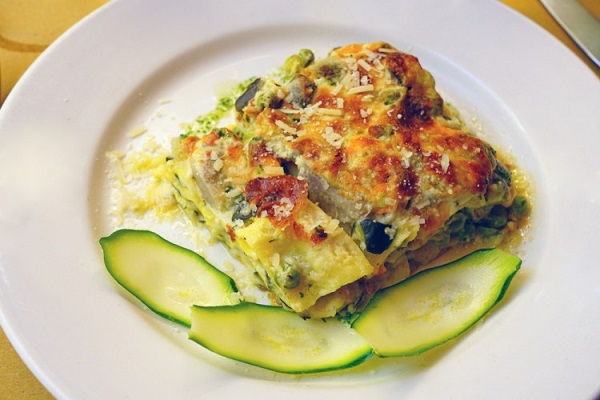 في طبق الفرن ضعي شرائح من الكوسا ثم بعض خليط الصلصة ثم بعض البشاميل وبعض الجبن وكرري ذلك.